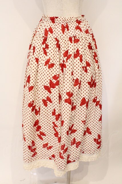 PINK HOUSE / 水玉りぼんプリントスカート アイボリー×アカ O-26-03-03-013-LO-SK-OW-OS