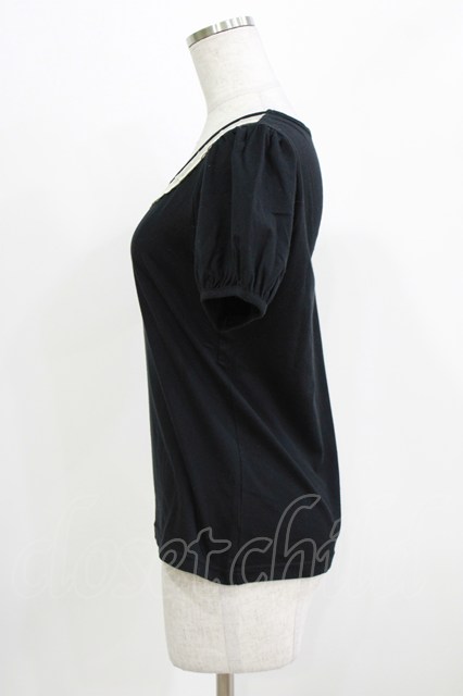 Emily Temple cute / レースカラーパフカットソー ブラック H-26-03-06-057-ET-TO-AK-ZH
