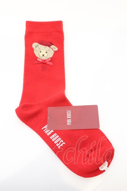 PINK HOUSE / 三つ子のくま冬支度モチーフソックス アカ O-26-03-04-003-LO-ZA-OW-OS [戻る]