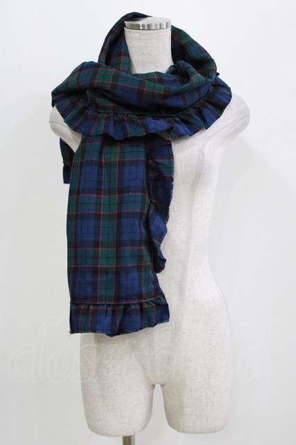Jane Marple / ウールタータンのフリルストール ネイビー×グリーン H-26-03-07-072-JM-ZA-KB-ZH [戻る]