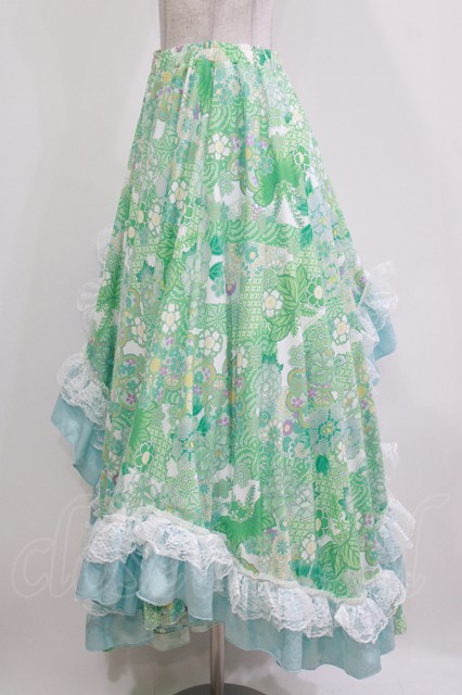Qutie Frash / 和柄ロングスカート ミントグリーン H-26-03-07-021-QU-SK-KB-ZH [戻る]