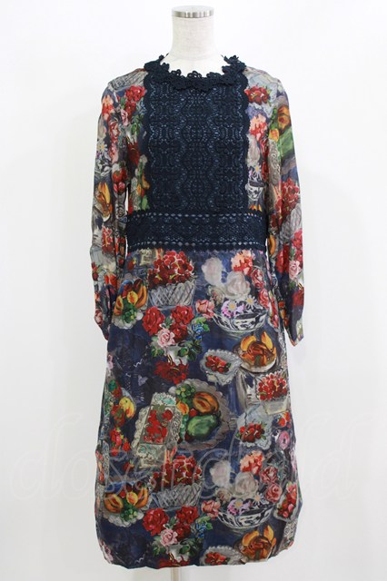 Jane Marple Dans Le Salon / Art in bloomのレースヨークdayドレス ネイビー H-26-03-07-003-JM-OP-KB-ZH