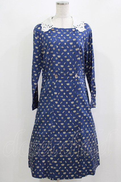 Jane Marple / Tumbling Diceのグースカラードレス 紺 H-26-03-07-008-JM-OP-KB-ZH