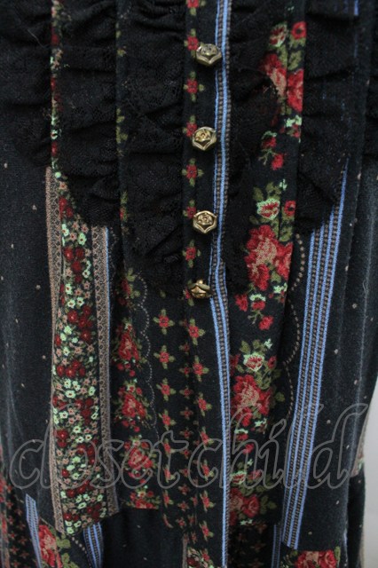 axes femme / お花ボーダードット柄チュニック M 黒 I-26-03-04-087-AX-OP-TE-ZI