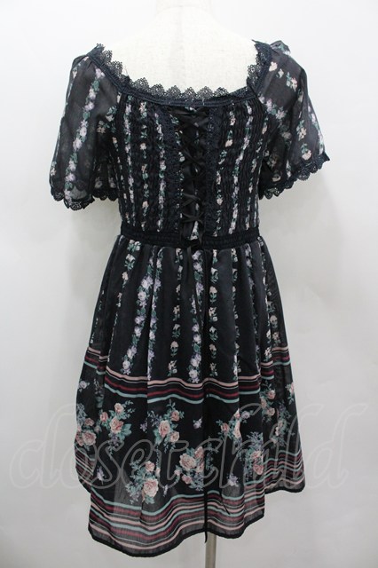 axes femme / ストライプ花柄ワンピース M 黒 I-26-03-04-093-AX-OP-TE-ZI