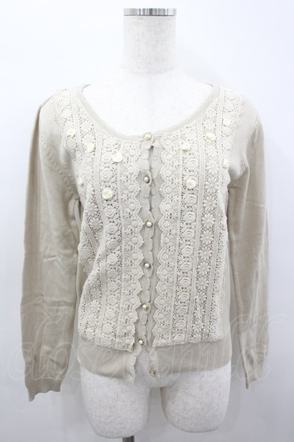 axes femme / レース&ローズニットカーディガン M ベージュ I-26-03-04-067-AX-TO-TE-ZI