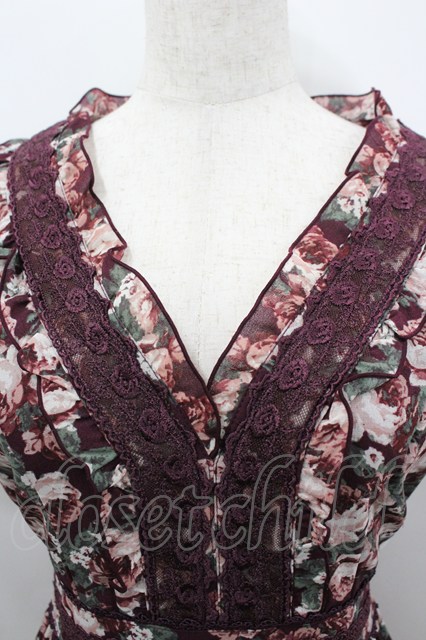 axes femme / ローズリーフ柄ティアードワンピース M ワイン I-26-03-04-054-AX-OP-TE-ZI
