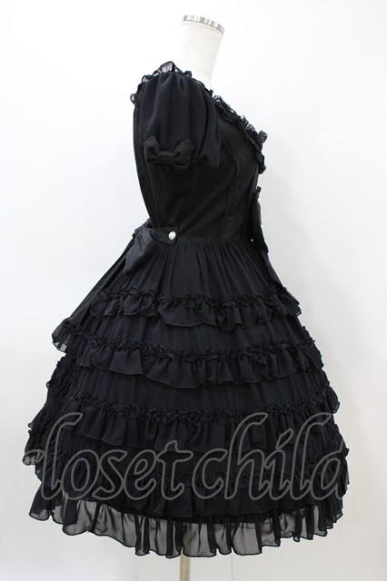 Angelic Pretty / ジョーゼットフリルシンフォニーワンピース Free ブラック H-26-03-07-1018-AP-OP-NS-ZH