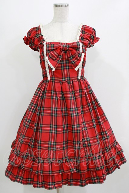 BABY,THE STARS SHINE BRIGHT / タータンチェックミニ袖ジャンパースカート&カチューシャセット Free エンジ H-26-03-08-028-BA-OP-NS-ZH [戻る]