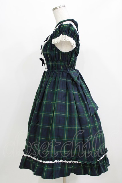 BABY,THE STARS SHINE BRIGHT / タータンチェックリボンミニ袖ジャンパースカート Free グリーン H-26-03-08-016-BA-OP-NS-ZH