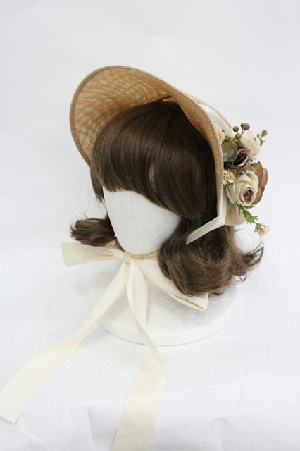LOLITAその他(お買取対象外) / ローズモチーフシースルー麦わらハット ブラウンXアイボリー I-26-03-05-080-LO-AC-SA-ZI [戻る]