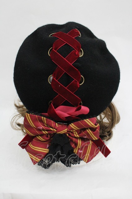 ATELIER PIERROT / ハリー・ポッター リボンブローチ付きレースアップベレー帽 グリフィンドール(レッド) I-26-03-05-083-EL-AC-KB-ZI