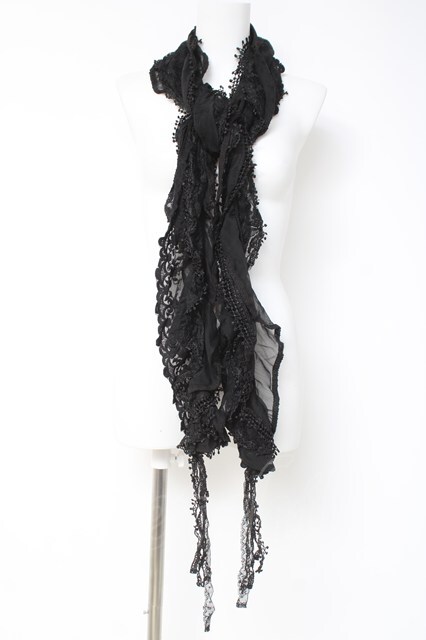 OZZ ANGELO / 異素材スカーフ 黒 Y-26-03-06-035-OO-ZA-SZ-ZY
