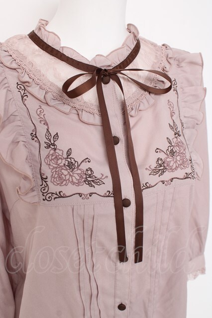 axes femme / クラシカル刺繍七分袖ブラウス ピンク Y-26-03-06-077-AX-BL-SZ-ZY