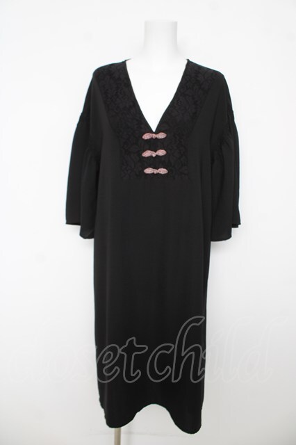 axes femme / チャイナ釦ゆったりロングワンピース M 黒 Y-26-03-06-162-AX-OP-SZ-ZY [戻る]