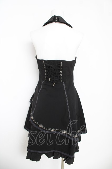Ozz oneste / 薔薇刺繍ホルターワンピース 黒 Y-26-03-06-217-OO-OP-SZ-ZY
