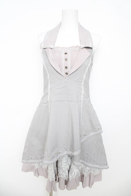 Ozz oneste / 薔薇刺繍ホルターワンピース グレー Y-26-03-06-218-OO-OP-SZ-ZY [戻る]
