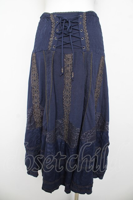 Ozz oneste / ウエストモチーフ刺繍レースフィッシュテールスカート 紺 Y-26-03-06-257-OO-SK-SZ-ZY