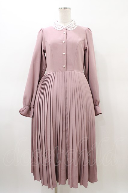 m petit by misako / レース襟プリーツワンピース M ピンク H-26-03-09-045-LO-OP-NS-ZH