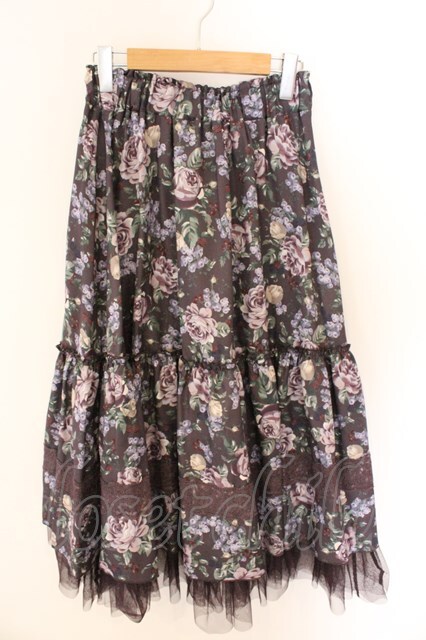 axes femme / ホーリーローズ柄フリルスカート F パープル系 O-26-03-06-027-AX-SK-OW-OS