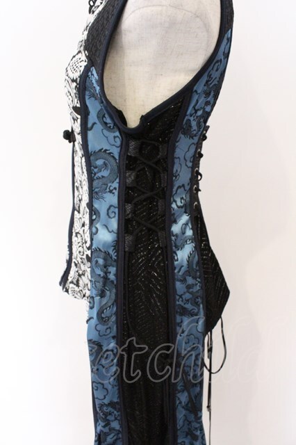 Qutie Frash / チャイナロングベスト ブラック×ブルー O-26-03-06-038-QU-JA-IG-OS