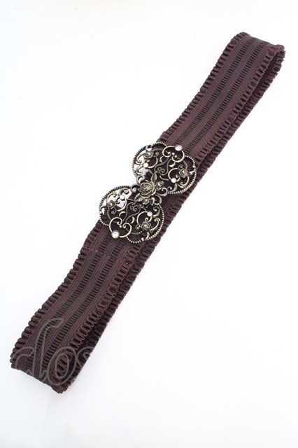 axes femme / 立体バラ×蝶ゴムベルト ブラウン×ゴールド O-26-03-07-043-AX-ZA-IG-OS