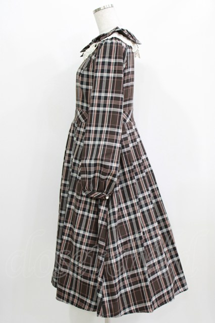 Melody BasKet / リボンとレースカラーのタータンチェックワンピース ブラウン H-26-03-09-1004-LO-OP-KB-ZH