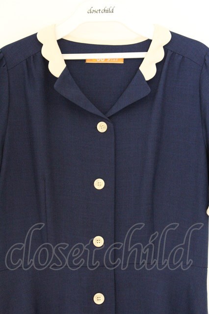 Fi.n.t / スカラップ開衿ワンピース F ネイビー O-26-03-08-002-CA-OP-OW-OS
