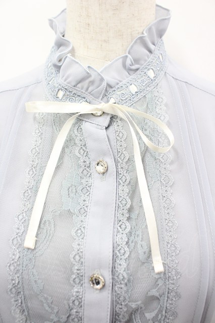 axes femme / 袖プリーツスタンドフリルブラウス サックス I-26-03-06-009-AX-BL-SA-ZI