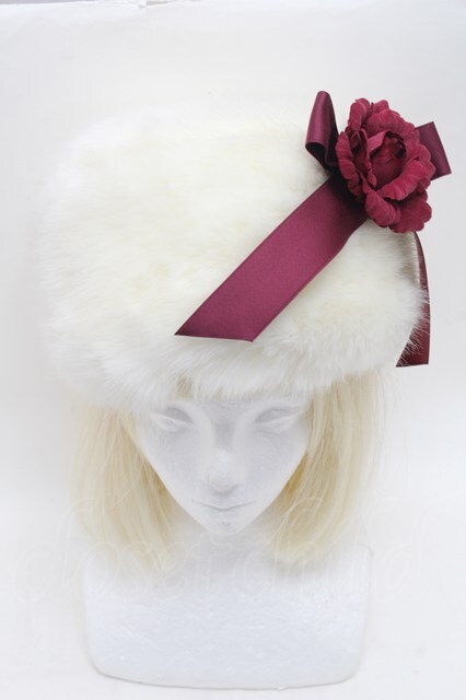Moi-meme-Moitie / コサージュ付きファーハット 白 S-26-03-04-038-MO-AC-HR-ZS