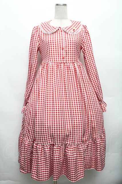 FLC / hsギンガムマルエリワンピース M 赤x白 S-26-03-06-040-LO-OP-HR-ZS