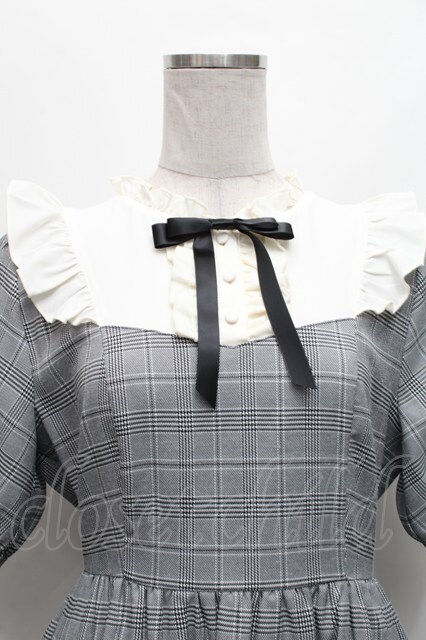 axes femme / リボンブローチティアードワンピース 白xグレー S-26-03-06-046-AX-OP-HR-ZS