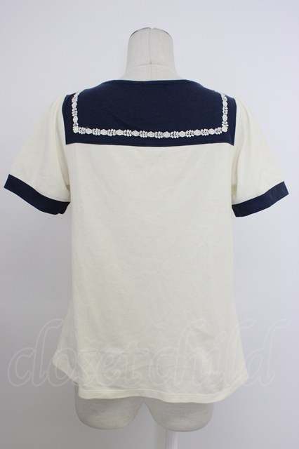 axes femme / セーラーカラー風デザイントップス アイボリーXネイビー T-26-03-11-004-AX-TO-SA-ZT