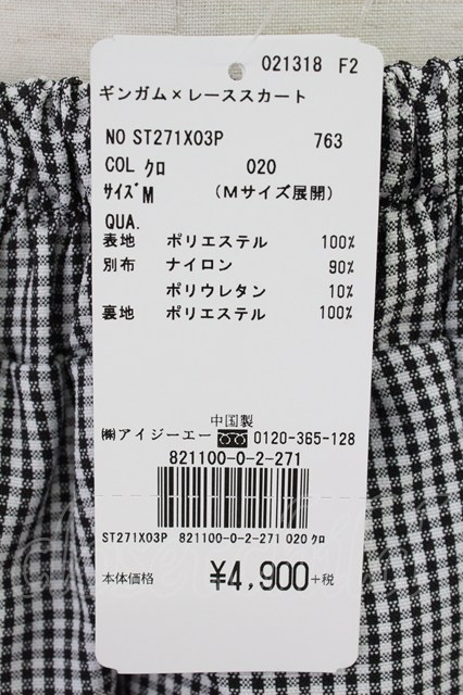 axes femme POETIQUE / ギンガム×レーススカート M ブラック T-26-03-11-043-AX-SK-SA-ZT