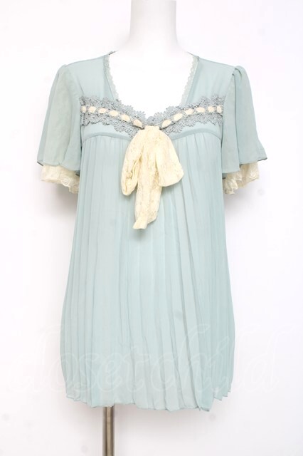 axes femme / リボンプリーツブラウス ミント Y-26-03-09-037-AX-BL-SZ-ZY