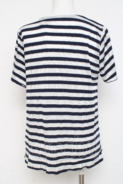 axes femme / ボーダーレース風トップス M 紺 Y-26-03-09-048-AX-TO-SZ-ZY