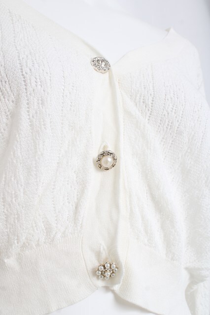 axes femme / ビジューボタン透かし編みカーディガン 白 Y-26-03-09-070-AX-TO-SZ-ZY