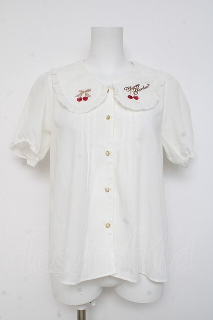 Amavel / Cherry刺繍入り配色リボンタイ付半袖ブラウス F 白 Y-26-03-09-100-CA-BL-SZ-ZY
