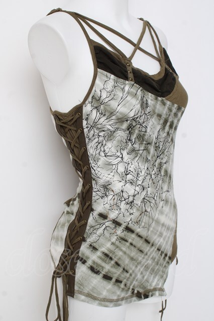 Ozz Croce / プリント入りサイド編み上げキャミ カーキ Y-26-03-09-116-OO-TO-SZ-ZY [戻る]