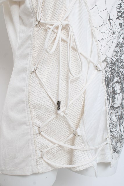 Ozz Croce / フロント編み上げpt入り半袖トップス 白 Y-26-03-09-119-OO-TO-SZ-ZY