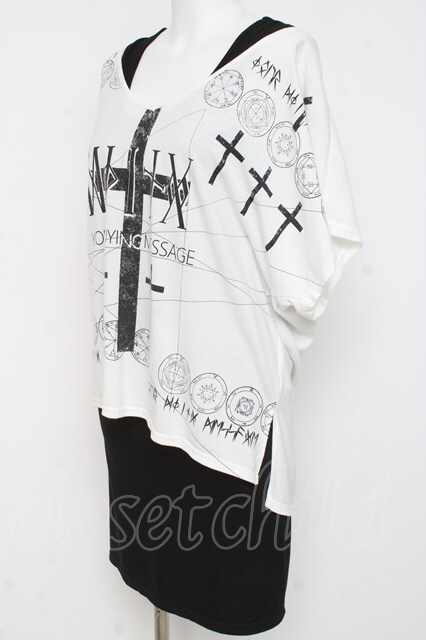 SEX POT ReVeNGe / 十字プリントレイヤードアシメトップス M 白×黒 Y-26-03-09-125-SP-TO-SZ-ZY