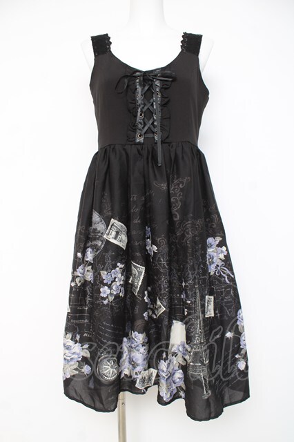 axes femme / パリトラベル柄ワンピース M 黒 Y-26-03-09-182-AX-OP-SZ-ZY