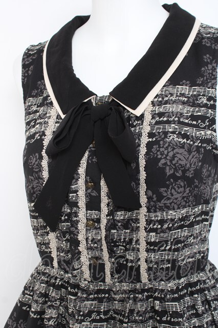 axes femme / 音符柄シフォンワンピース M 黒 Y-26-03-09-199-AX-OP-SZ-ZY