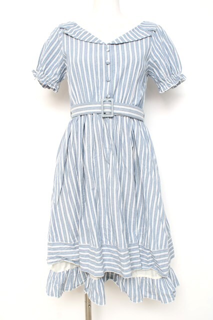 axes femme POETIQUE / ストライプレイヤード風ワンピース M サックス Y-26-03-09-218-AX-OP-SZ-ZY