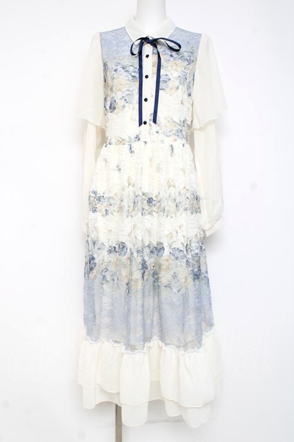 axes femme / フラワーパネルプリントレースワンピース F サックス Y-26-03-09-227-AX-OP-SZ-ZY