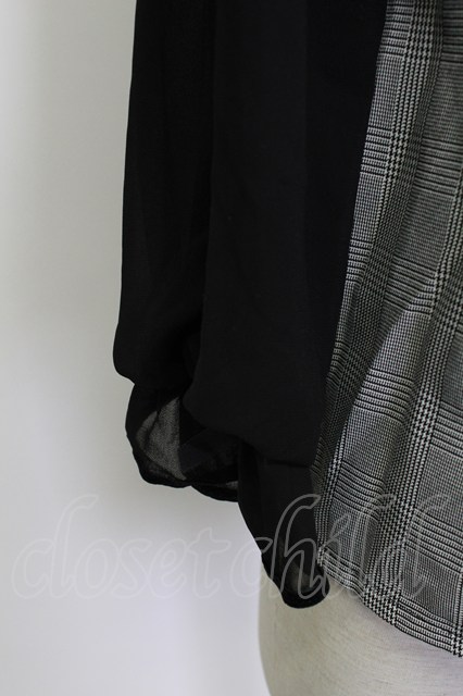 axes femme POETIQUE / グレンチェックシフォン袖トップス 黒X白 T-26-03-13-004-AX-TO-SA-ZT