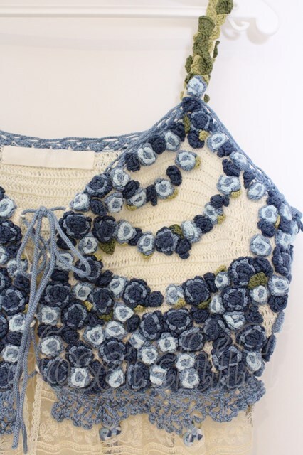 PINK HOUSE / フラワーモチーフレースキャミソール アイボリー×ブルー O-26-03-09-067-LO-TO-IG-OS [戻る]
