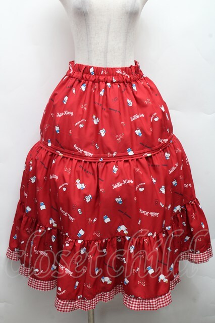 axes femme / ハローキティプリントスカート 赤 S-26-03-08-042-AX-SK-AS-ZS