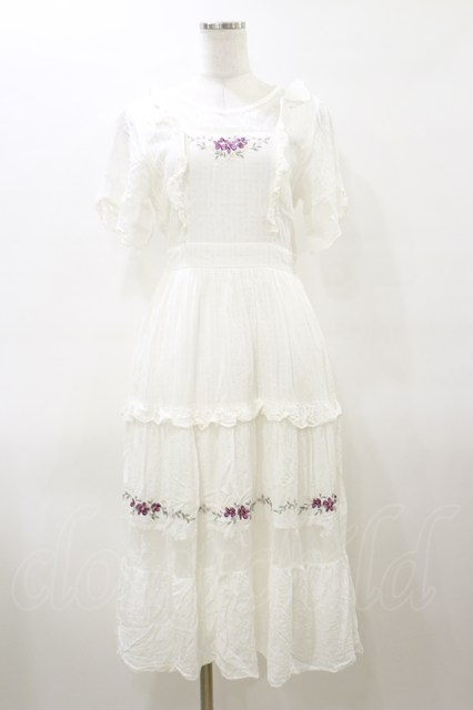 axes femme POETIQUE / フラワー刺繍ピナフォアワンピース M オフ H-26-03-11-1086-AX-OP-NS-ZH