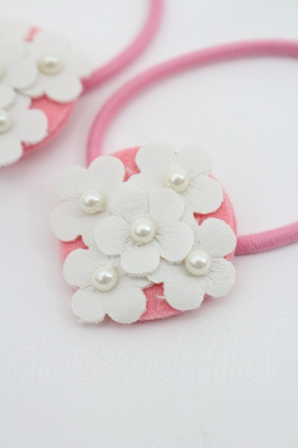 Shirley Temple / フラワーモチーフヘアゴムセット 白Xピンク I-26-03-08-080-ET-AC-SA-ZI